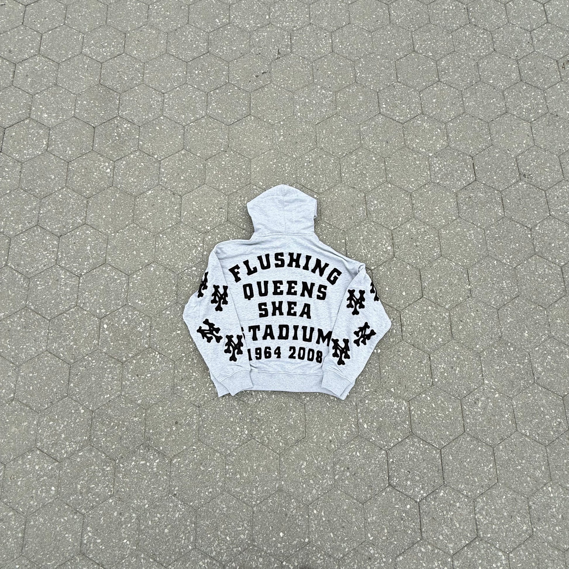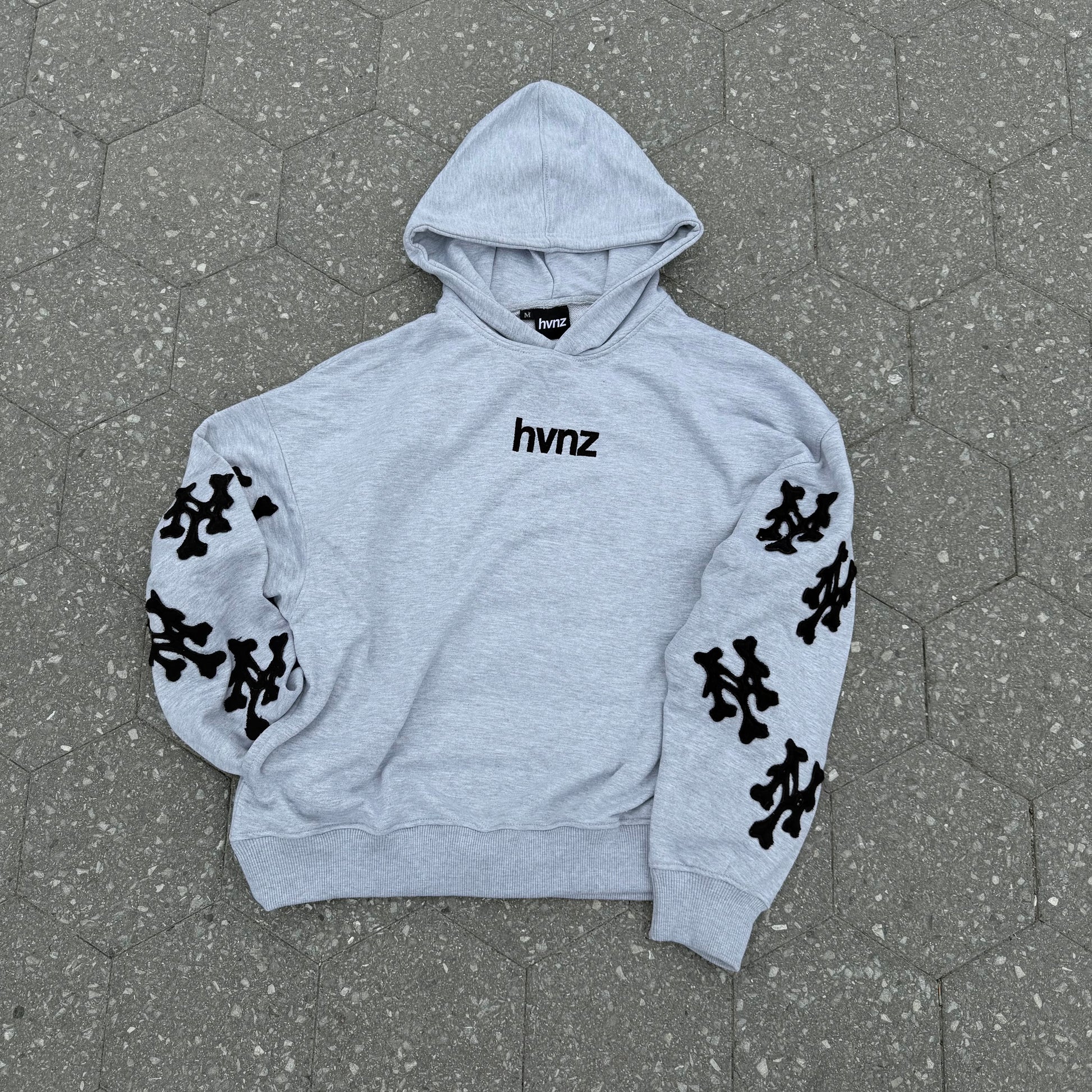 This hoodie is crafted from premium 450 GSM 100% Cotton French Terry (55oz), offering a relaxed oversized fit that stays true to size. The hidden side pockets keep the front sleek, while the French Terry applique on the sleeves adds rich texture and intricate detail, making the design truly stand out.